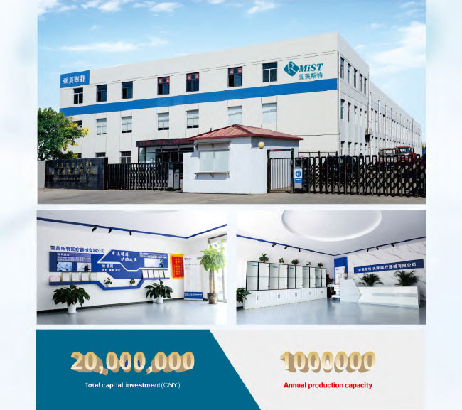 شركة Rmist (Tianjin) Medical Equipment Co.، Ltdيقع في Jinnan Balitai Industrial Park في تيانجين في الصين.RMIST هي شركة قائمة على التكنولوجيا تدمج الابتكار والبحث والتطوير وتسويق الإنتاج والمبيعات.برأس مال إجمالي قدره 20 مليون استثمار ، أنشأنا ورشة تنقية على مستوى 100.000 بمساحة 2200 متر مربع ، ومختبر بمساحة 10.000 متر مربع بمساحة 60 مترًا مربعًا